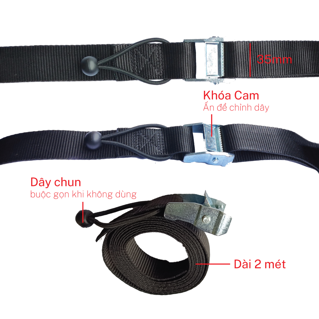 Dây chằng khóa cam bản 35mm x 2m Cam/Đen (Mầu ngẫu nhiên)